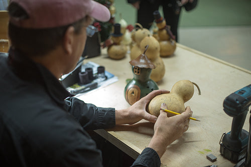 Over 20 years have come and gone since that first gourd. We are a bit grayer and a lot wiser. There are now over 20 of us living this dream and crafting over 250 kinds of gourds. Although we are not all related, most of us have worked together for so many years that everyone feels like family. Our crafting team alone has over 40 years of combined experience along with over 35 years in our finishing area. Each craftsman works thousands of hours to perfect their skill and become a master.